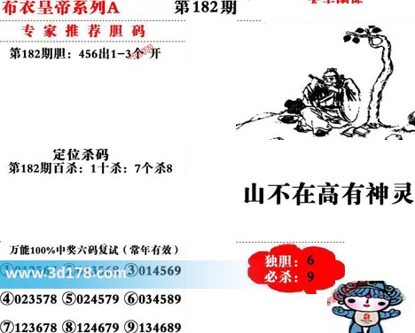 福彩3d第2020182期布衣皇帝A版布衣专家独家推荐: