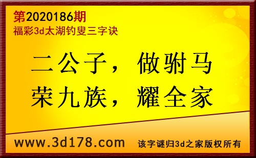 3d第20186期太湖字谜:二公子,做驸马,荣九族,耀全家