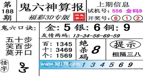 3d第20188期鬼六神算报为您推荐鬼六口诀: