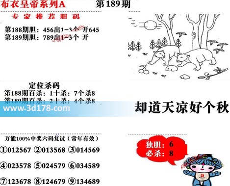 福彩3d第2020189期布衣皇帝A版布衣专家独家推荐: