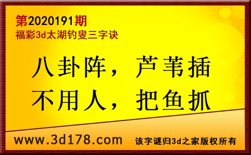 3d第20191期太湖字谜:八卦阵,芦苇插,不用人,把鱼抓
