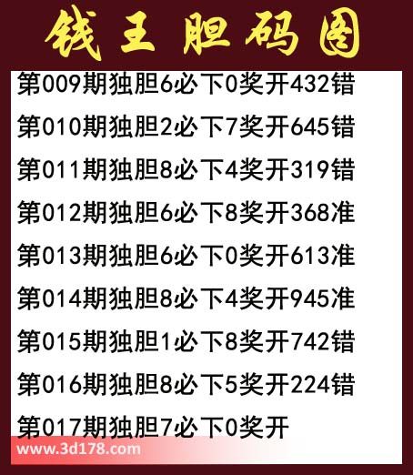 第009期独胆6必下0奖开432错第010期独胆2必下7奖开645错第011期独胆8必下4奖开319错第012期独胆6必下8奖开368准第013期独胆6必下0奖开613准第014期独胆8必下4奖开945准第015期独胆1必下8奖开742错第016期独胆8必下5奖开224错第017期独胆7必下0奖开