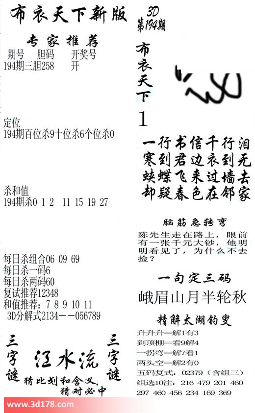 福彩3d第2020194期福彩3d布衣天下新版:
