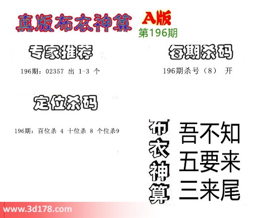 3d之家布衣图库之布衣神算图第2020196期详解: