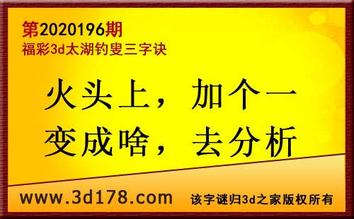 3d第20196期太湖字谜:火头上,加个一,变成啥,去分析
