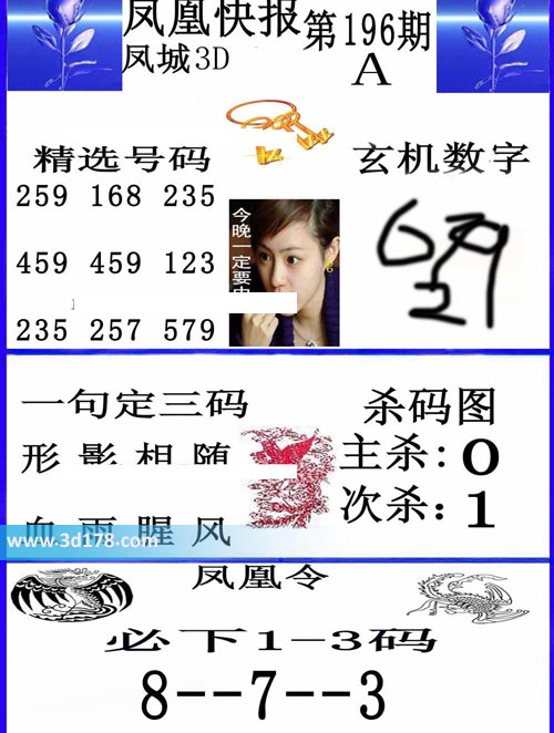 福彩3d凤凰快报图第20196期精选号码推荐: