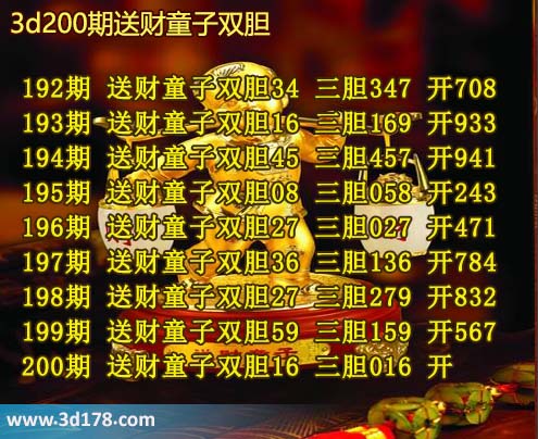 200期 送财童子双胆16 三胆016 开