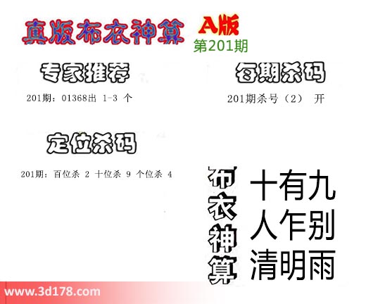 3d布衣神算第201期定位杀码: