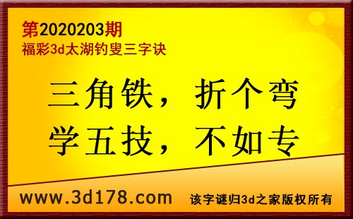 3d第20203期太湖字谜:三角铁,折个弯,学五技,不如专