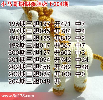 小马哥期期三胆必下204期推荐胆码: