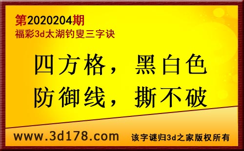 3d第20204期太湖字谜:四方格,黑白色,防御线,撕不破