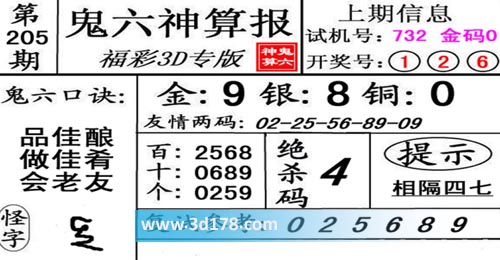 3d第20205期鬼六神算报为您推荐鬼六口诀: