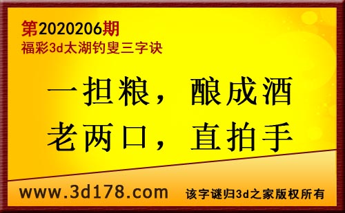 3d第20206期太湖字谜:一担粮,酿成酒,老两口,直拍手
