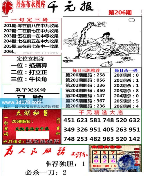 福彩3d第2020206期布衣千元报图详情分析如下: