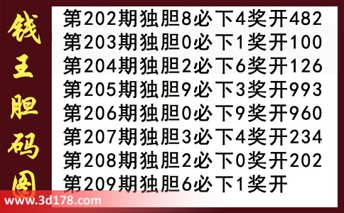 第209期钱王胆码图推荐胆码: