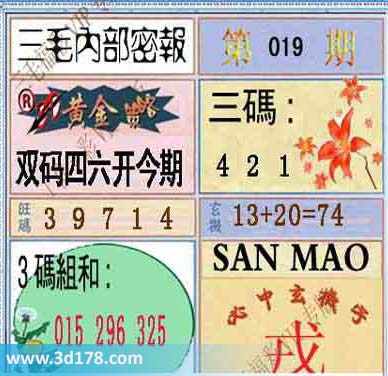 福彩3d第2014019期三毛内部密报图: