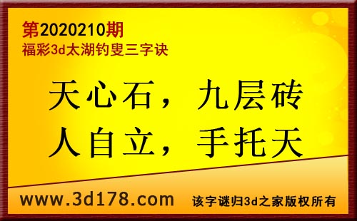 3d第20210期太湖字谜:天心石,九层砖,人自立,手托天