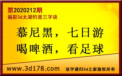3d第20212期太湖字谜:慕尼黑,七日游,喝啤酒,看足球