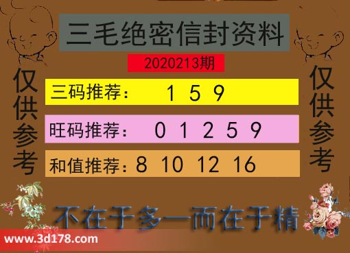 3d之家第2020213期三毛绝密信封资料图: