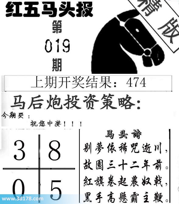 福彩3d第2014019期红五马头报: