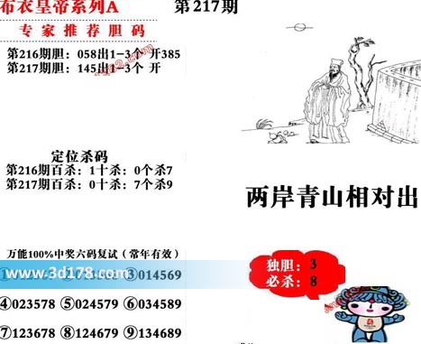福彩3d第2020217期布衣皇帝A版布衣专家独家推荐: