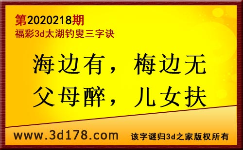3d第20218期太湖字谜:海边有,梅边无,父母醉,儿女扶