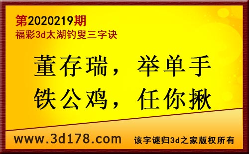 3d第20219期太湖字谜:董存瑞,举单手,铁公鸡,任你揪