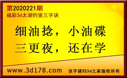 3d第20221期太湖字谜:细油捻,小油碟,三更夜,还在学