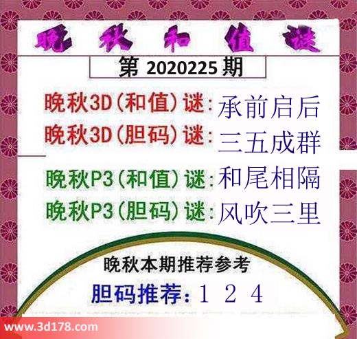 晚秋p3(和值)谜:和尾相隔