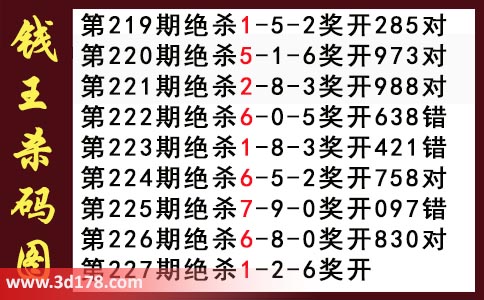 该钱王杀码图由3d之家3d图库原创,仅供彩民参考,温馨提供。