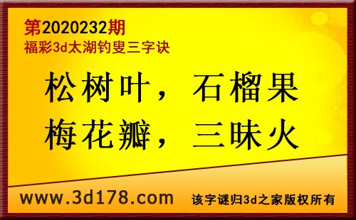 3d第20232期太湖字谜:松树叶,石榴果,梅花瓣,三昧火