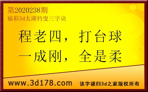 3d第20238期太湖字谜:程老四,打台球,一成刚,全是柔