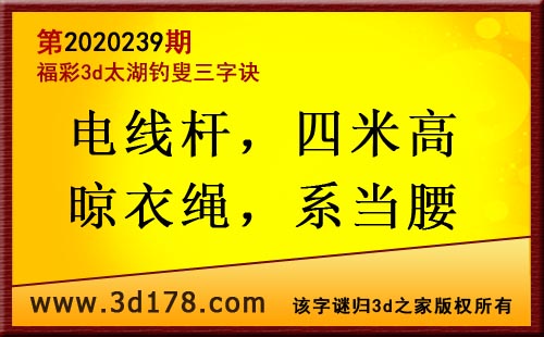 3d第20239期太湖字谜:电线杆,四米高,晾衣绳,系当腰