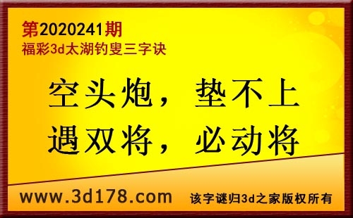 3d第20241期太湖字谜:空头炮,垫不上,遇双将,必动将