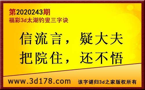 福彩3d第2020243期太湖图库解析: