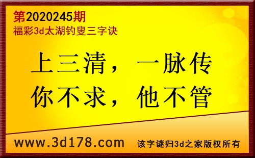 3d第20245期太湖字谜:上三清,一脉传,你不求,他不管