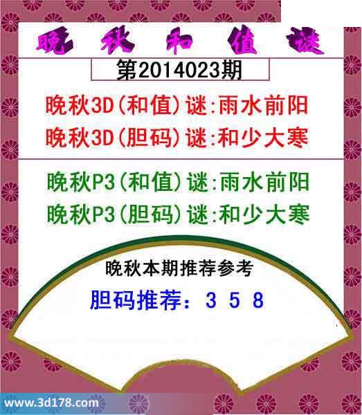 晚秋3D(胆码)谜:和少大寒