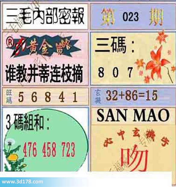 福彩3d第2014023期三毛内部密报图