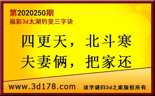 3d第20250期太湖字谜:四更天,北斗寒,夫妻俩,把家还