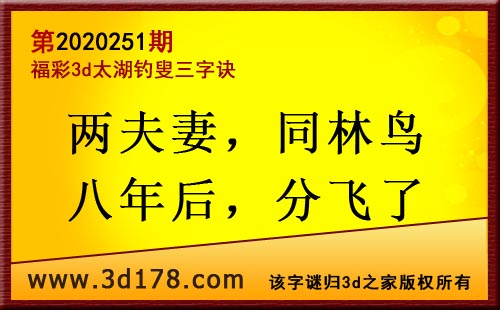 3d第20251期太湖字谜:两夫妻,同林鸟,八年后,分飞了