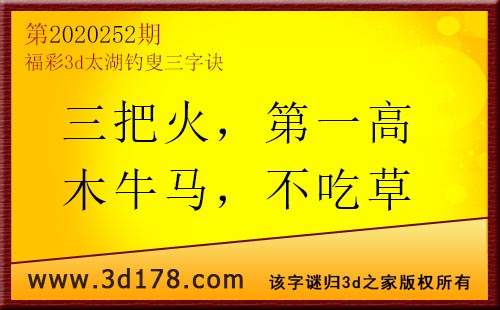 3d第20252期太湖字谜:三把火,第一高,木牛马,不吃草