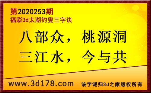 3d第20253期太湖字谜:八部众,桃源洞,三江水,今与共