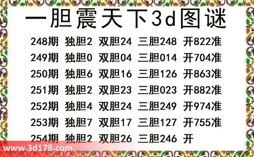 一胆震天下三胆图库由3d之家3d图库频道原创,仅供彩民参考,温馨提供。