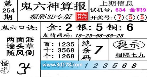 3d第20254期鬼六神算报为您推荐鬼六口诀: