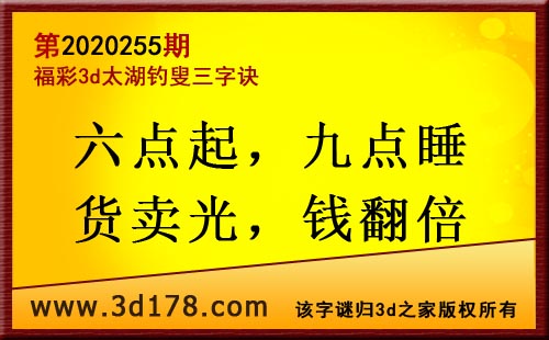 3d第20255期太湖字谜:六点起,九点睡,货卖光,钱翻倍