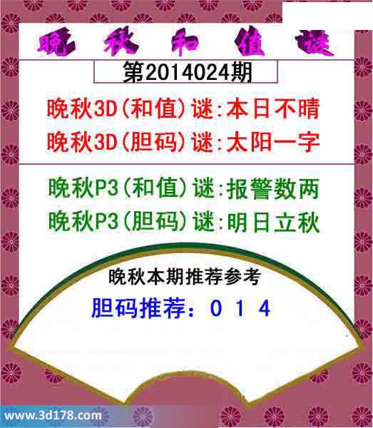 晚秋P3(和值)谜:报警数两