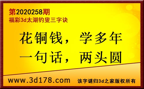 3d第20258期太湖字谜:花铜钱,学多年,一句话,两头圆