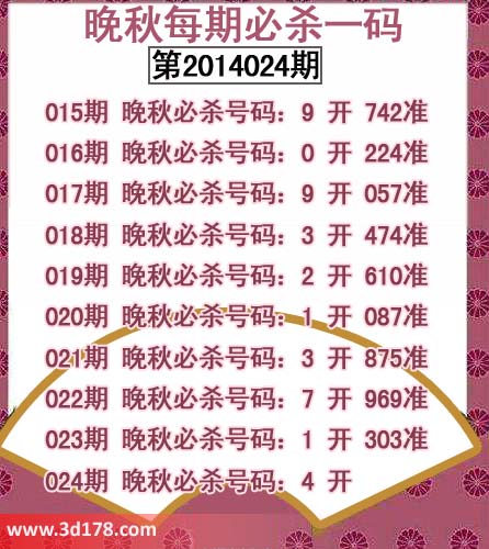 018期 晚秋必杀号码:3 开 474准