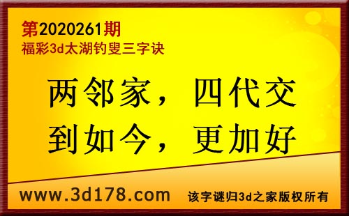 3d第20261期太湖字谜:两邻家,四代交,到如今,更加好