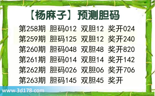 福彩3d第2020263期杨麻子胆码图: